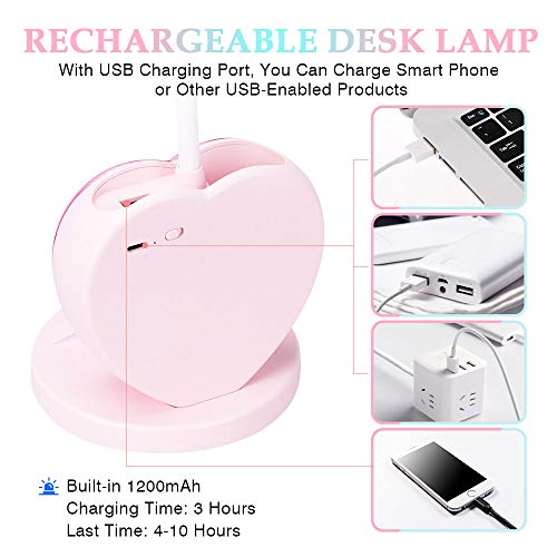 ALUOCYI lampada da scrivania a LED per ragazze, lampada da tavolo per gli occhi con portapenne, porta USB ricaricabile, 2 temperature di colore per ragazze adolescenti, rosa