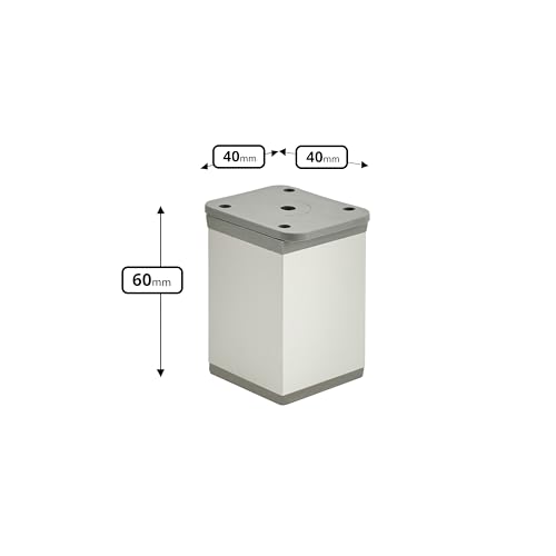 ️ ALTA QUALITÀ. I piedi sono costruiti sulla base di profili di alluminio anodizzato 40x40 mm e due cappucci di chiusura. Un'estremità è dotata di un campo di regolazione di 20 mm. L'altra estremità è costituita da una base in plastica fissa. La capacità di carico delle gambe è di 120 kg per set di 4 pezzi