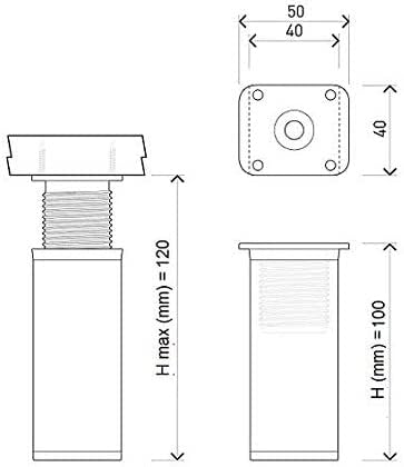 ALUSFERA Piedini Per Mobili - Gambe Per Mobili in Metallo - Piedini Regolabili per Mobili - Accessori di Montaggio Inclusi- In Altezza Set di 8-40 x 40 mm - 100mm Nero