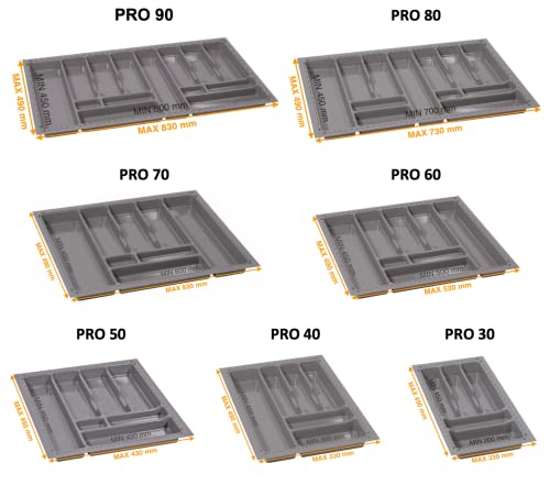 ✅ Ampia gamma di dimensioni: il vassoio per posate a cassetto si adatta al cassetto 30 / 40 / 50 / 60 / 70 / 80 / 90 cm sulla guida. Disponibile in diverse dimensioni. Colori disponibili: bianco e argento