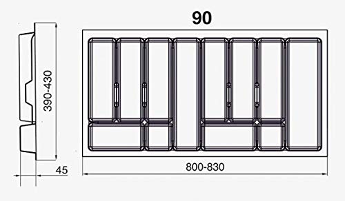 ✅ Ampia gamma di dimensioni: il vassoio per posate a cassetto si adatta al cassetto 30 / 40 / 45 / 50 / 60 / 70 / 80 / 90 cm sulla guida. Disponibile in diverse dimensioni. Colori disponibili: bianco e argento