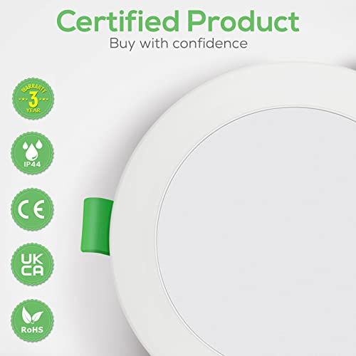 ALUSSO 6 Faretti LED da Incasso, 10W 800LM Luci da Soffitto Interno, Dimmerabile IP44 per Bagno, Bianco Caldo 3000K Bianca Naturale 4000K Bianco Freddo 6500K, Apertura Ø125-135mm, Ultra Sottile 28.7mm