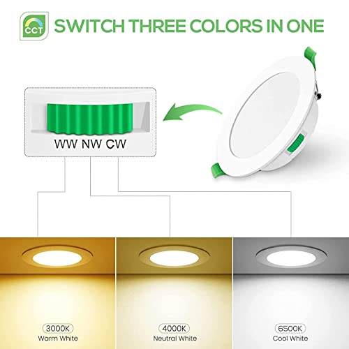 【CCT - 3 colori di illuminazione regolabili】Adottato un nuovo design, i faretti da incasso possono essere impostati su 3000K (bianco caldo) o 4000K (bianco neutro) o 6500K (bianco freddo) per soddisfare le vostre esigenze. Basta scegliere il colore di illuminazione che meglio si adatta alla vostra casa tramite un interruttore a levetta verde. Si prega di scegliere l'opzione di colore di illuminazione desiderata prima dell'installazione.