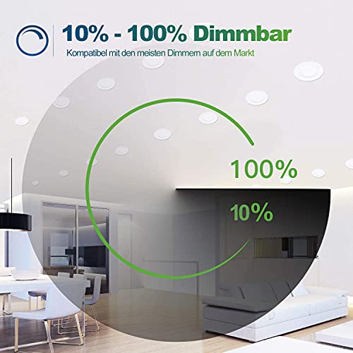 ✅【10% - 100% dimmerabile】 Faretto LED dimmerabile, intervallo di intensità 10% - 100%, scegliete una luminosità confortevole secondo le vostre esigenze, create un'atmosfera diversa per la vostra stanza. Compatibile con la maggior parte dei dimmer a sezione di fase sul mercato, senza sfarfallio o rumore. Il dimmer non è incluso, i nostri faretti LED dimmerabili possono essere alimentati anche senza dimmer a piena potenza.