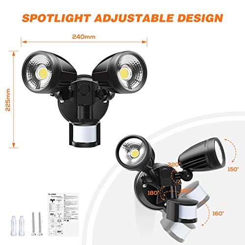 ALUSSO Faretto a LED con Sensore di Movimento 30W Lampada da Esterno 2400LM Luce di Sicurezza a LED IP54 Impermeabile Proiettore Faro a LED per Cortile Giardino Garage, 3000K 4000K 5700K, Nero