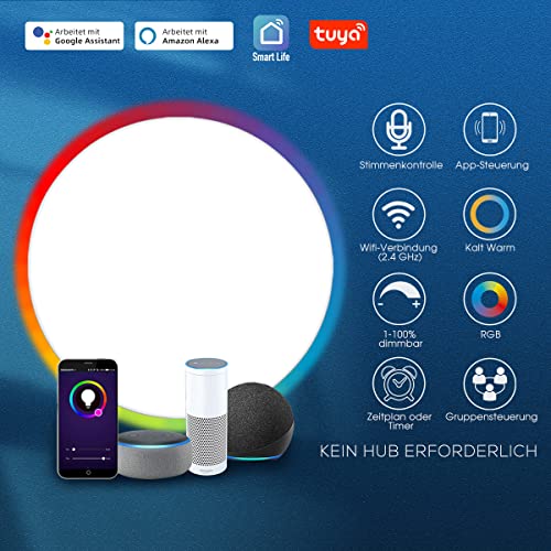 ALUSSO LED Intelligente WiFi 20W 1700LM Impermeabile IP54, Compatibile con Alexa e Google Home, Lampada da soffitto Controllo da App e Voce, 16 Milioni RGB & 2700-6500K CCT