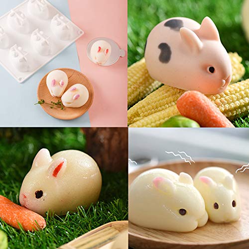 ALUYF Stampo per sapone a forma di coniglio Stampo in silicone a forma di coniglietto Stampo per torta coniglio per torta dessert sapone gelatina pane budino muffin(6 cavità a forma di coniglio)
