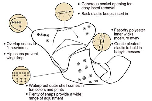 Misura regolabile. 3 pannolini preformati con stampa digitale, 3 pannolini normali, ognuno con due inserti.