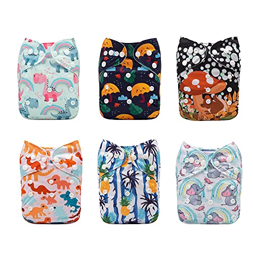 ALVABABY - Pannolini lavabili e riutilizzabili in tessuto, 6 pezzi, 12 inserti Sets 6DM47-IT tutto in 1