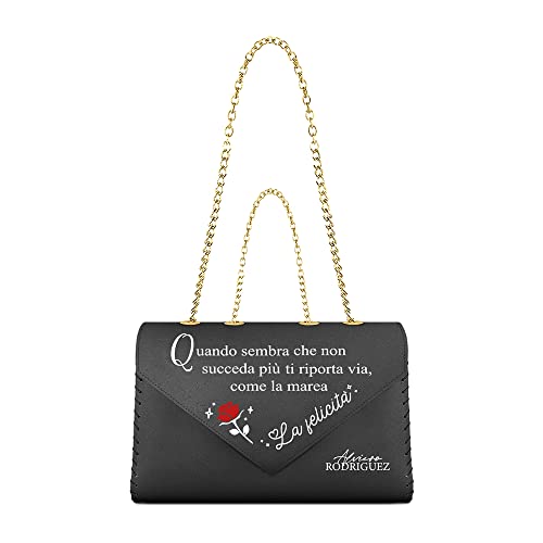 La borsa mary è realizzata in pelle, impreziosita da una tracolla in catena color oro.
