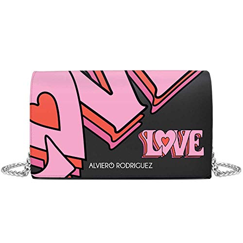Alviero Rodriguez Borsa catena pelle amore rosa cuore borsa a spalla nero bottone magnetico BORSA 80s Love