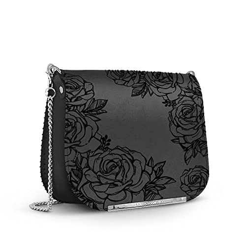 Alviero Rodriguez Petit Roses Black tracolla vera pelle pattina intercambiabile