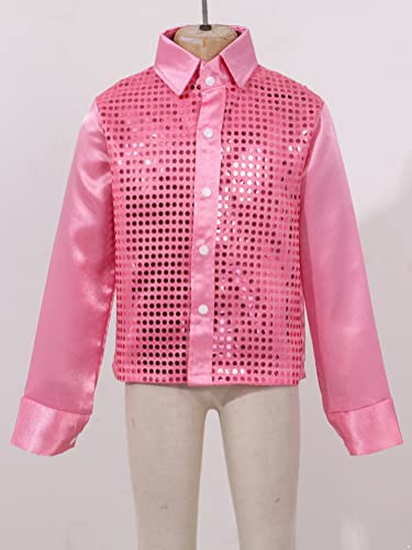 Alvivi Camicia a Maniche Lunghe Paillettes per Festa Giacca Lucida per Danza Moderna Jazz Latino Americano T-Shirt Tops Bambini Costumi di Ballo Performance Rosa 4-5 Anni