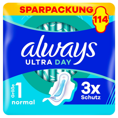 Dettagli del prodotto: Multipack, ultra sottile e super assorbente always Non accontentatevi di una protezione inferiore alla tripla: gli assorbenti igienici Ultra Normal (taglia 1) con ali utilizzano la tecnologia più avanzata per fornire un assorbente multifunzionale con 3 funzioni protettive Il sistema InstantDry assorbe il liquido in pochi secondi e allontana l'umidità dalla pelle. La tecnologia LeakGuard trattiene il liquido e previene le perdite. L'assorbente è inoltre dotato della tecnologia OdourLock, che neutralizza gli odori per farvi sentire fresche e protette durante le mestruazioni. Le alette assicurano una protezione confortevole e sicura. always Con Ultra, potete affrontare la vita di tutti i giorni in tutta tranquillità. Dermatologicamente approvato dalla Skin Health AllianceDermatologicamente approvato dalla Skin Health Alliance Confezione realizzata con il 50% di plastica riciclata Incluso nella fornitura: 114x tamponi con ali Ultra Normal
