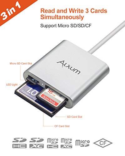 Alxum Lettore di schede Flash Compatto con Cavo prolunga 4FT, Lettore di schede Micro SD e SD USB 3.0, Supporto per la Lettura simultanea di schede Micro SD/SDHC/SDXC, SD/SDHC/SDXC, CF Tipo 1