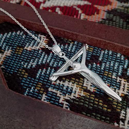 Alylosilver Collana con Ciondolo Croce d'Argento con Cristo per Uomo. Include Catena in Argento da 45 cm e Scatola Regalo