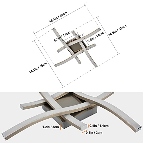Alynzee Plafoniera LED Elegante Curvo Plafoniere 4 Luci LED Integrato 20W 2400 Lumen Luce Calda 3000K Lampadario Moderno da Soffitto Montaggio Luce per Soggiorno Camere da Letto Sala da Pranzo Cromo