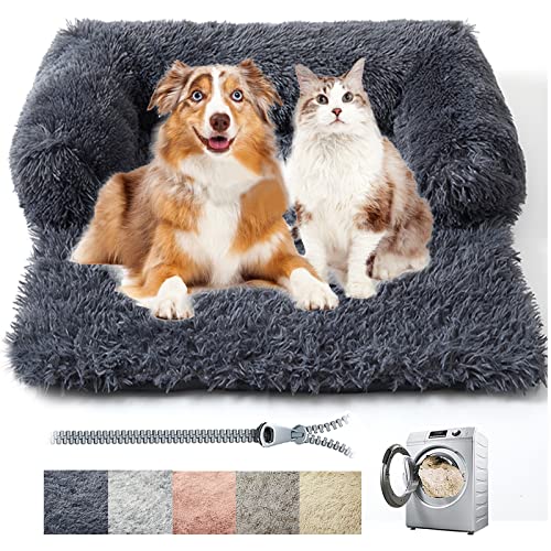 Alywen Cuscino Cane per Divano Cucce per Cani Grande Sfoderabile Cuccia Cane da Interno Peluche Esteso Fluffy Memory Foam 7d Morbido per Copridivano Copriauto (S, Grigio scuro)