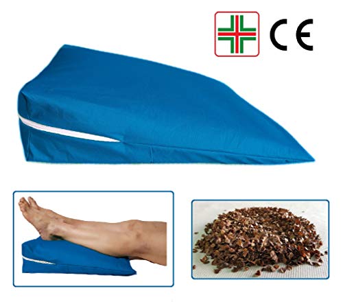 ALZAGAMBE -Blu- Cuscino a Cuneo per le Gambe e Ginocchia Ortopedico Terapeutico da Letto con Imbottitura Naturale in Pula di Grano Saraceno Depolverizzata - Fodera Esterna in Cotone con Cerniera