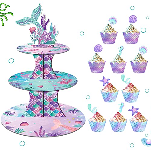 Alzata per cupcake a sirena,Alzata per Torta a Sirena,Alzata per Dolci in Cartone,Cupcake Stand,Supporto per Cupcake,Ripiani per cupcake,Cartone Supporti per Torte
