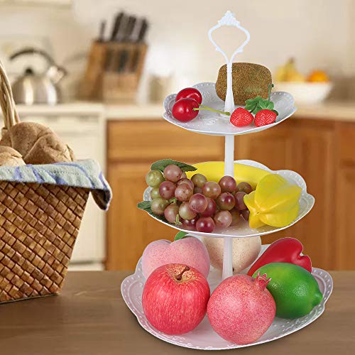 2 Pcs Alzata 3 Piani in Plastica per Frutta e Dolci, Vassoi per Torte, Frutta Piastra Supporto Alzata per sistemare Cibo, Dessert per Le Feste (rotonda)