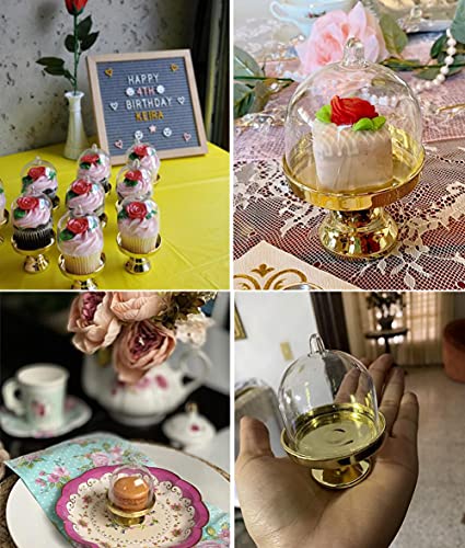 Mini alzata in plastica per cupcake con coperchio a cupola trasparente, per matrimoni, compleanni, Natale, Halloween, feste, colore: oro, confezione da 6 pezzi
