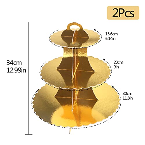 Alzata per torta da 2 pezzi 3 livelli Alzata per cupcake in cartone oro Tè pomeridiano Alzata per dessert Torre rotonda Decorazioni in pizzo dorato per la festa di Natale Compleanno Anniversario