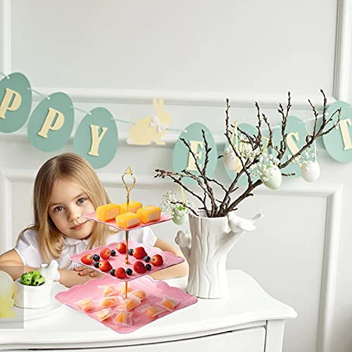 Alzata Torta a 3 Piani, Alzata per Torta Cupcake Stand, Rosa Supporto per Torta in Plastica, Torte Dolci Stand Frutta e Dolci, Vassoi per Torte, Frutta Supporto per Matrimonio o Festa di Compleanno
