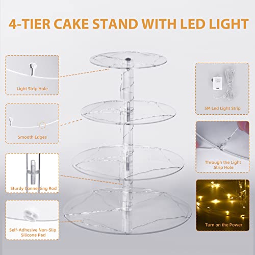 Alzata per Torte con Luce LED, Alzata per Cupcake in Acrilico a 4 Livelli per 38 Cupcake, Diametro 15 cm/19 cm/23 cm/26 cm, Espositore per Cupcake per Matrimonio/Compleanno/Festa