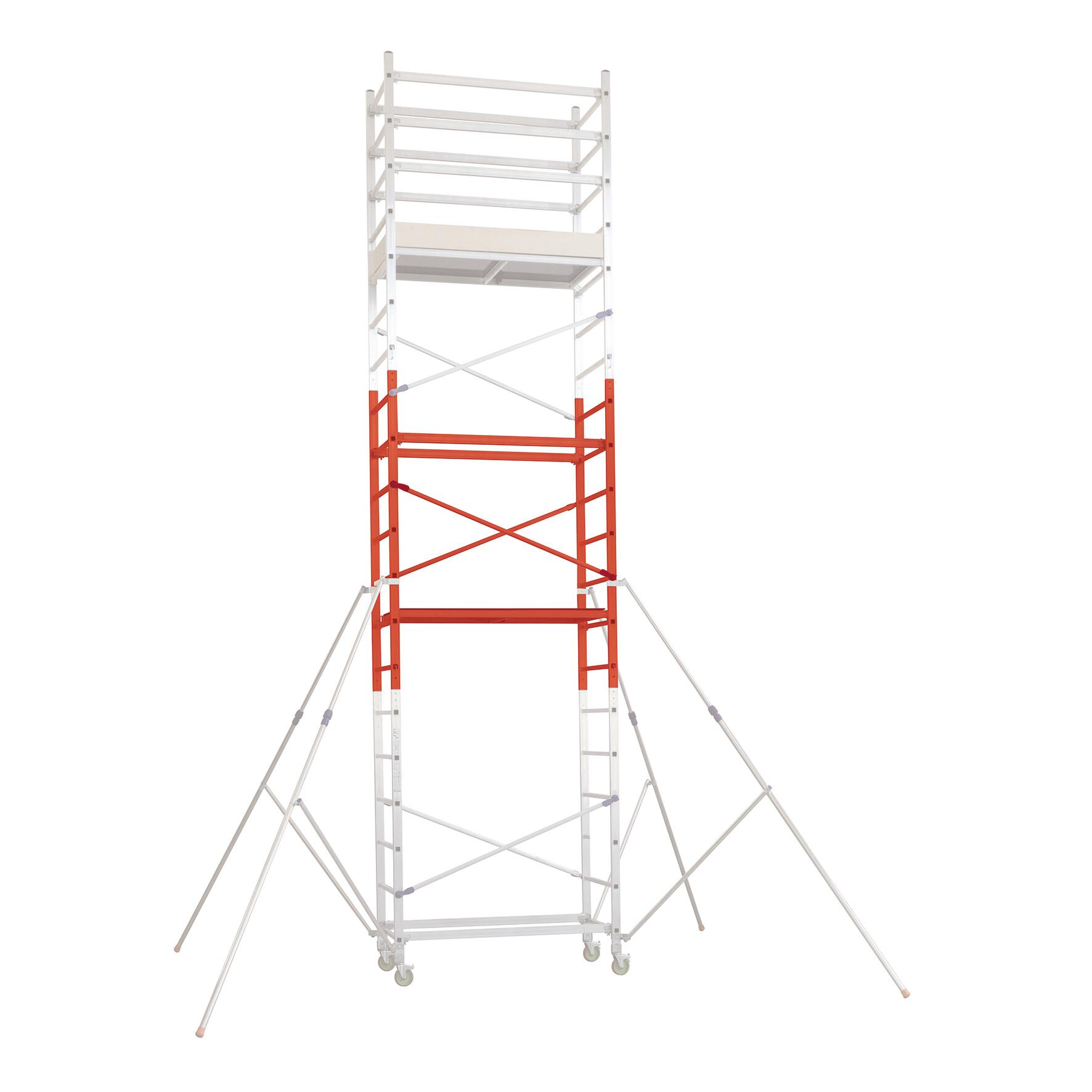 In alluminio. Ideale per arrivare a quota di lavoro di 690cm. Coordinabile con il trabattello Alto