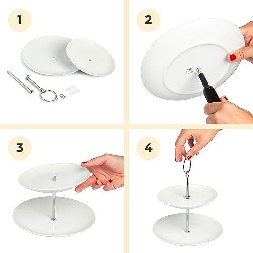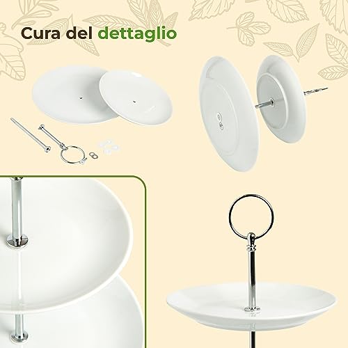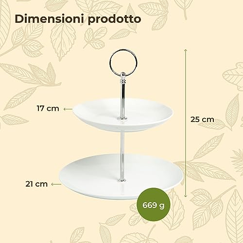 Alzatina per Dolci 2 livelli in ceramica - Alzatina Cucina perfetta come Portafrutta o Vassoio da Portata - versatile Alzata per dolci per feste e matrimoni, 21,5x25 cm