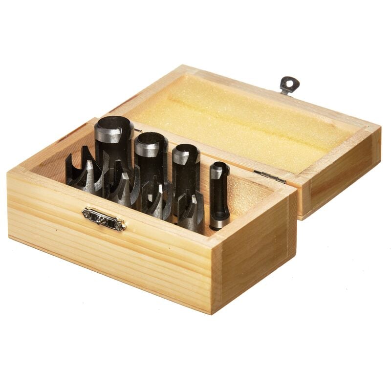 Misure incluse: 4 frese a colonna: 1/2, 3/8, 1/2, e 5/8 . 4 frese a unghia: 1/2, 5/8, 3/4, e 7/8 . In una comoda scatola di legno. Per uso professionale o per il fa-da-te.
