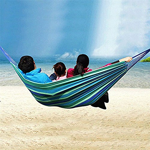 Amaca in Cotone da Esterno per Giardino Portatile Campagna Tela Letto Corde Oscillanti (Blu Verde, Tela di Cotone, per 1 Persone, Carico 200 Libbre)