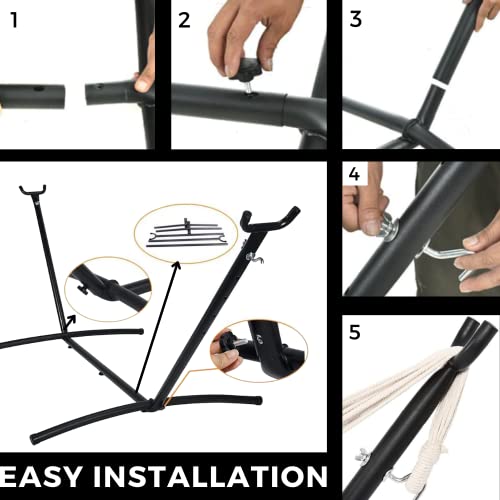 FACILE MONTAGGIO: Il telaio si monta rapidamente e può essere smontato per risparmiare spazio se necessario. In pochi minuti potrai goderti la tua amaca.