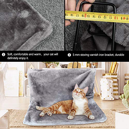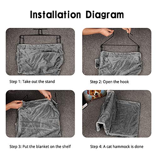 ✅NESSUNA INSTALLAZIONE RICHIESTA - La nostra amaca per gatti è a forma di L, con un gancio sul retro, puoi semplicemente appenderla a un palo. Non sono necessari chiodi o ventose, rendendo l'amaca facilmente spostabile.