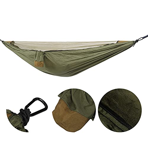 Amaca da esterno, amaca portatile compatta e leggera con zanzariera per campeggio all'aperto per viaggiare nel patio del cortile, escursionismo(Verde militare + Cammello)