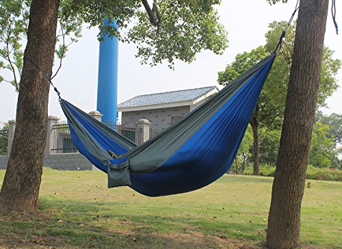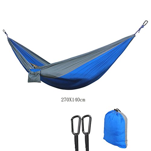 Amaca portatile da viaggio e campeggio per 2 persone, in tessuto di nylon da paracadute, ultra leggera, carico massimo di 300 kg, con cinghie per appenderla agli alberi incluse, Dark Blue/Grey, 300X200cm