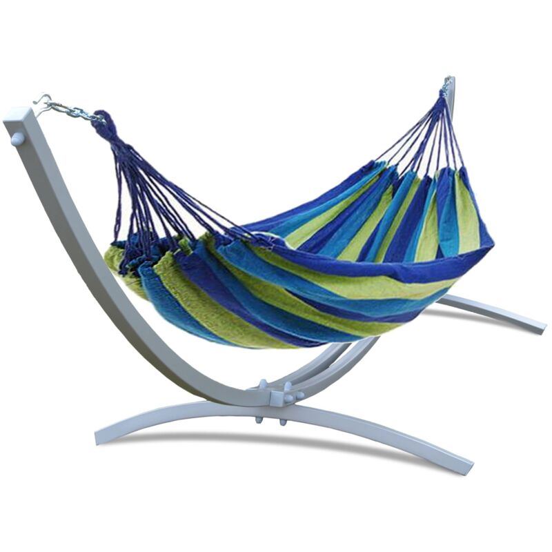 Set amaca completo composto da un supporto per amaca in metallo e una spaziosa amaca doppia. La struttura in metallo è di colore grigio argento ed è rifinita con una verniciatura a polvere resistente agli agenti atmosferici. Il telaio può trasportare un massimo di 220 kg. Facile da installare in giardino o in terrazza. Attacchi semplicemente l'amaca usando moschettoni e catene. L'amaca è blu con strisce verdi e misura 220 x 160 cm. Puoi rilassarti facilmente qui con due persone. Il telaio è ovviamente universalmente applicabile e può essere utilizzato anche per amache per 1 persona. Dispone di amaca Lunghezza (senza linee di montaggio): 220 cm Lunghezza di montaggio: 80 cm (40 cm per lato) Larghezza: 160 cm Carico massimo: 220 kg Materiale: cotone 280 g/m2 Dispone di supporto per amaca Peso del telaio: circa 23 kg Colore: grigio, verniciato a polvere Carico massimo: 220 kg molto resistente alle mutevoli condizioni meteorologiche Altezza: 128,5 cm Lunghezza: 363 cm Materiale: metallo