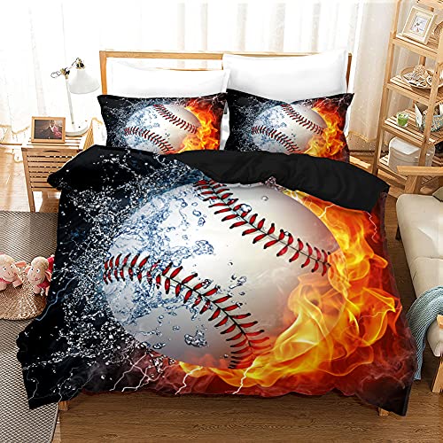 Amacigana Set di biancheria da letto da baseball, in microfibra, con stampa digitale 3D, set da 3 pezzi, lavabile in lavatrice, adatto per appassionati di sport (singolo 135 x 200 cm, baseball)