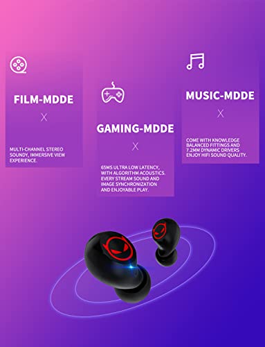 Musica e modalità di gioco: gli auricolari Bluetooth Devil hanno 2 modalità, premere tre volte gli auricolari giusti per passare rapidamente alla modalità gioco o musica. In modalità gioco, gli auricolari possono fornire una latenza ultra bassa di 48 ms, qualità del suono del gioco stereo 3D;