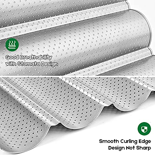 Perforato antiaderente: le perforazioni sulla superficie di questa teglia per baguette lasciano fuoriuscire l'umidità, consentendo alle pagnotte di diventare croccanti e dorate in modo uniforme;