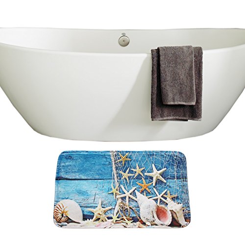 Amagical Bearbae - Set di 3 tappetini da bagno in flanella con stelle marine e conchiglie blu