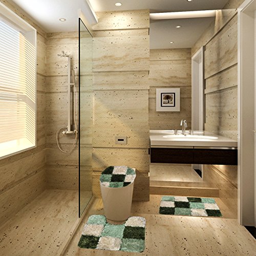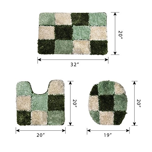 Amagical 3 Piece Bathroom Carpet Pedestal Lid Mat Toilet Cover Set Microfiber (Green) by Amagical