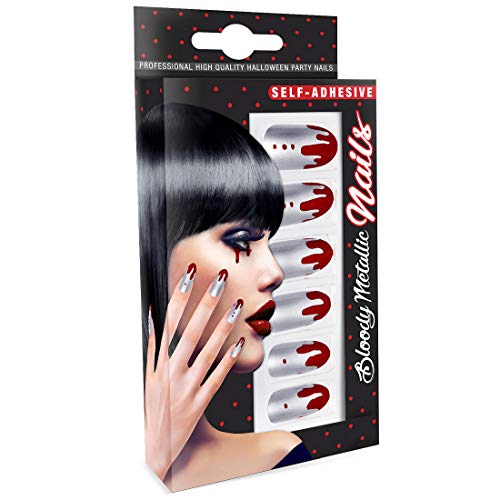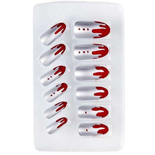 Amakando Unghie Decorate Dracula con Sangue in Punta da incollare/Argento-Rosso/Unghie finte con Sangue Vampiro/Idea Accattivante per Feste del brivido & Horror Party