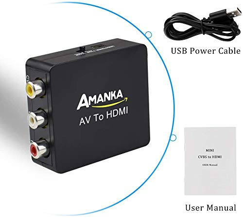 AMANKA Adattatore AV a HDMI e convertitori video RCA HDMI 1080P con cavo di ricarica USB per PC laptop Xbox PS4 PS3 TV STB VHS DVD Camera Nero