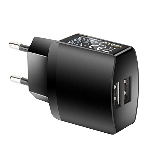 AMANKA Caricatore USB da Muro a 2 Porte (5V/2A), con Output Massima Fino a 2A, Compatto per iPhone, iPad, Huawei, Samsung Galaxy, Tablet e Altri Dispositivi USB (Nero)