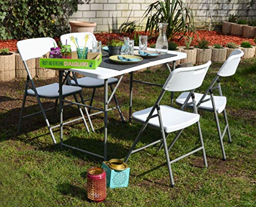 COMPATTO E CONFORTEVOLE - Per la cucina, la festa, in ufficio e in viaggio: tutti si siedono comodamente. 4 sedie da birreria in plastica bianca - pieghevoli, portatili, moderne - fino a 150 kg.