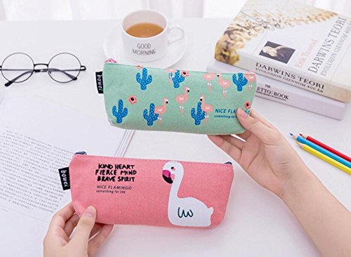 Amaoma Set di 4 Astuccio per Matite di Canvas, Flamingo Triangolare Astucci per Matite o Cosmetici in Tela Borsa Cosmetica Portamonete, Cancelleria di Studenti, 20*9.5cm (Verde, Rosa, Beige, Marrone)