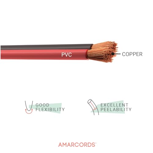 Amarcords - Cavo elettrico piatto bipolare sezione 2x0,5mm colore ROSSO-NERA. Piattina Rosso Nera, 20 metri