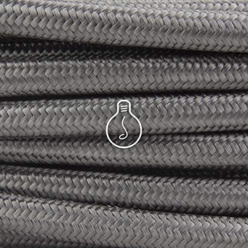 Amarcords - Cavo elettrico tessile colore GRIGIO SCURO tondo seta 5 metri a 2 conduttori 2x075 - Filo rivestito in tessuto colorato vintage per lampade lampadari applique e abat jour.